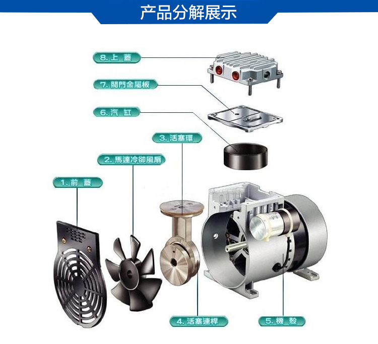 該泵可用于空調,制冷設備的修理,醫療儀器的抽吸裝置,印刷機械,真空包裝,真空吸塑,理化實驗及需要真空環境的小型裝置等各種真空作業用。還可以作為小型的油增壓泵、油擴散泵,分子泵等的前級泵使用。