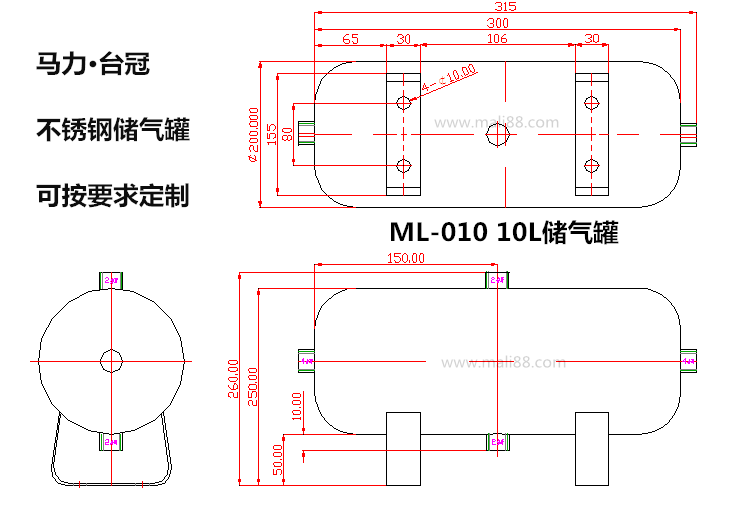 馬力·臺冠,不銹鋼儲罐,緩沖氣罐。可按需要求定制,4L,6L,8L,10L,12L等。